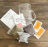 Gift set comes in a glass mug with tea ball infuser, 0.5oz hibiscus, 8g peppermint, and 2 honey packs. Directions included. Makes 8 servings.